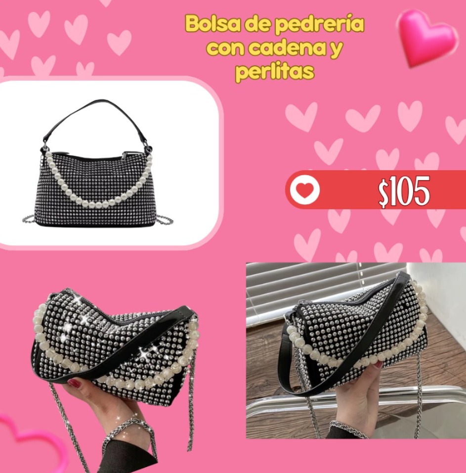 Bolsa de pedrería con cadena y perlitas